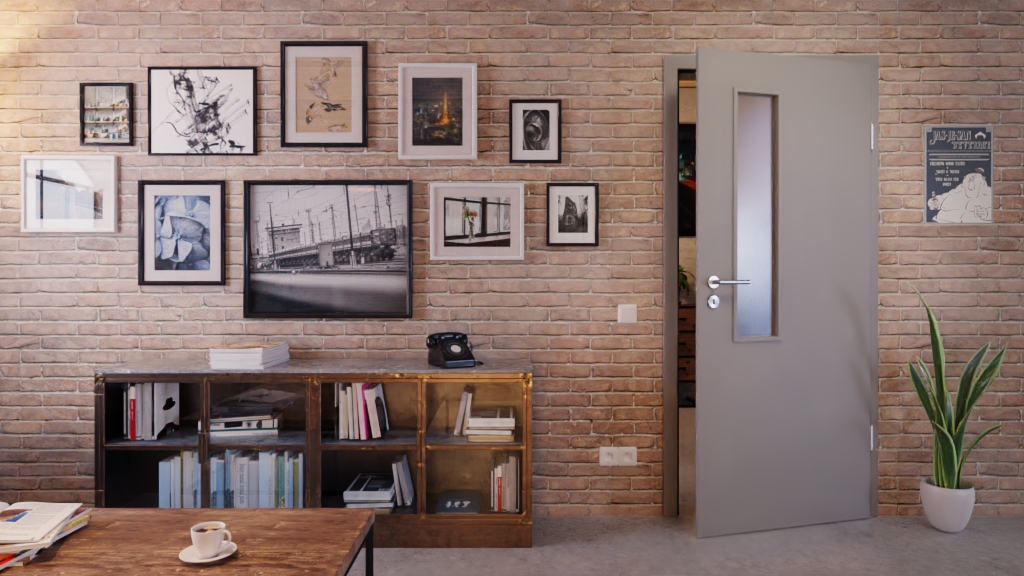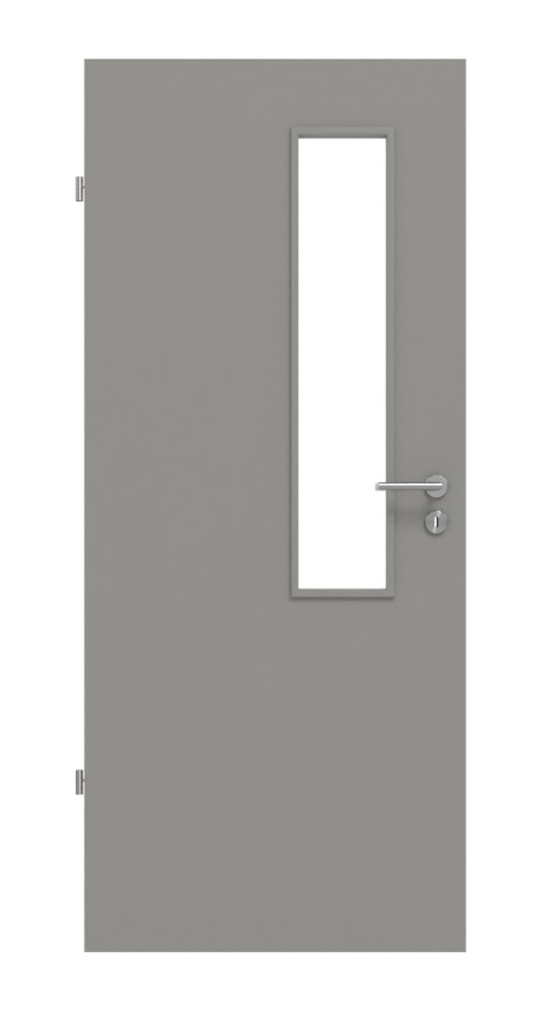 Dzięki kanciastemu kształtowi i nałożonym listwom wycięcie nadaje pomieszczeniu modny klimat. Listwy są dopasowane do drzwi w kolorze Kitt. W przypadku wykończeń szkła od przezroczystego do matowego każdy znajdzie coś dla siebie.