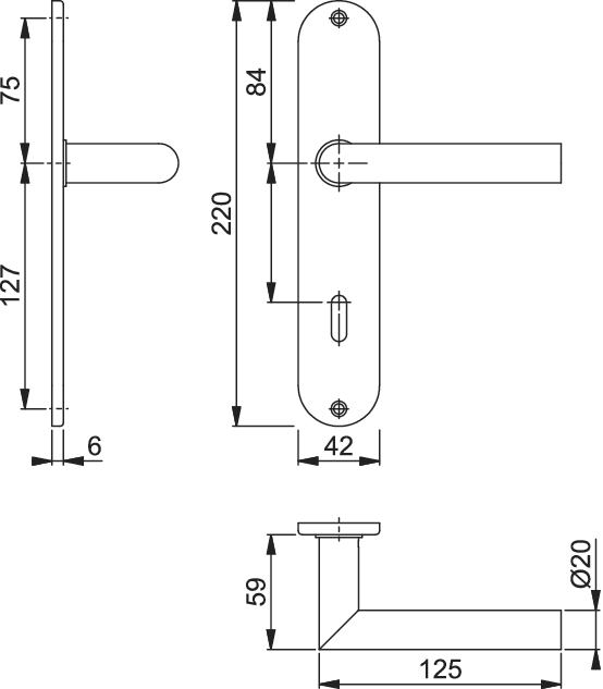 Klasyczny zestaw okuć do drzwi wewnętrznych dla grubości drzwi 35-45 mm: