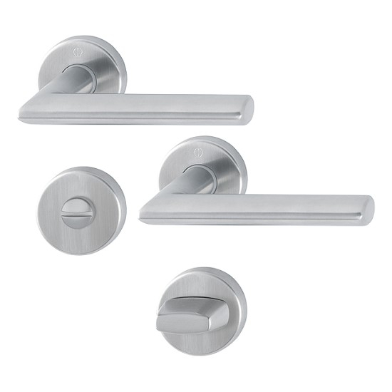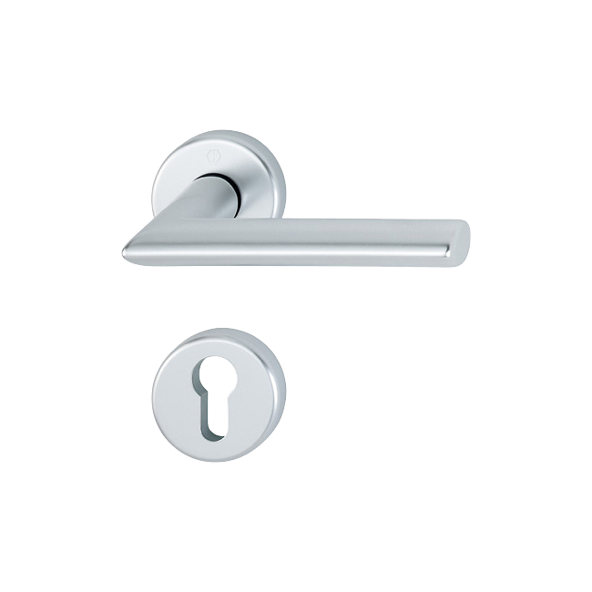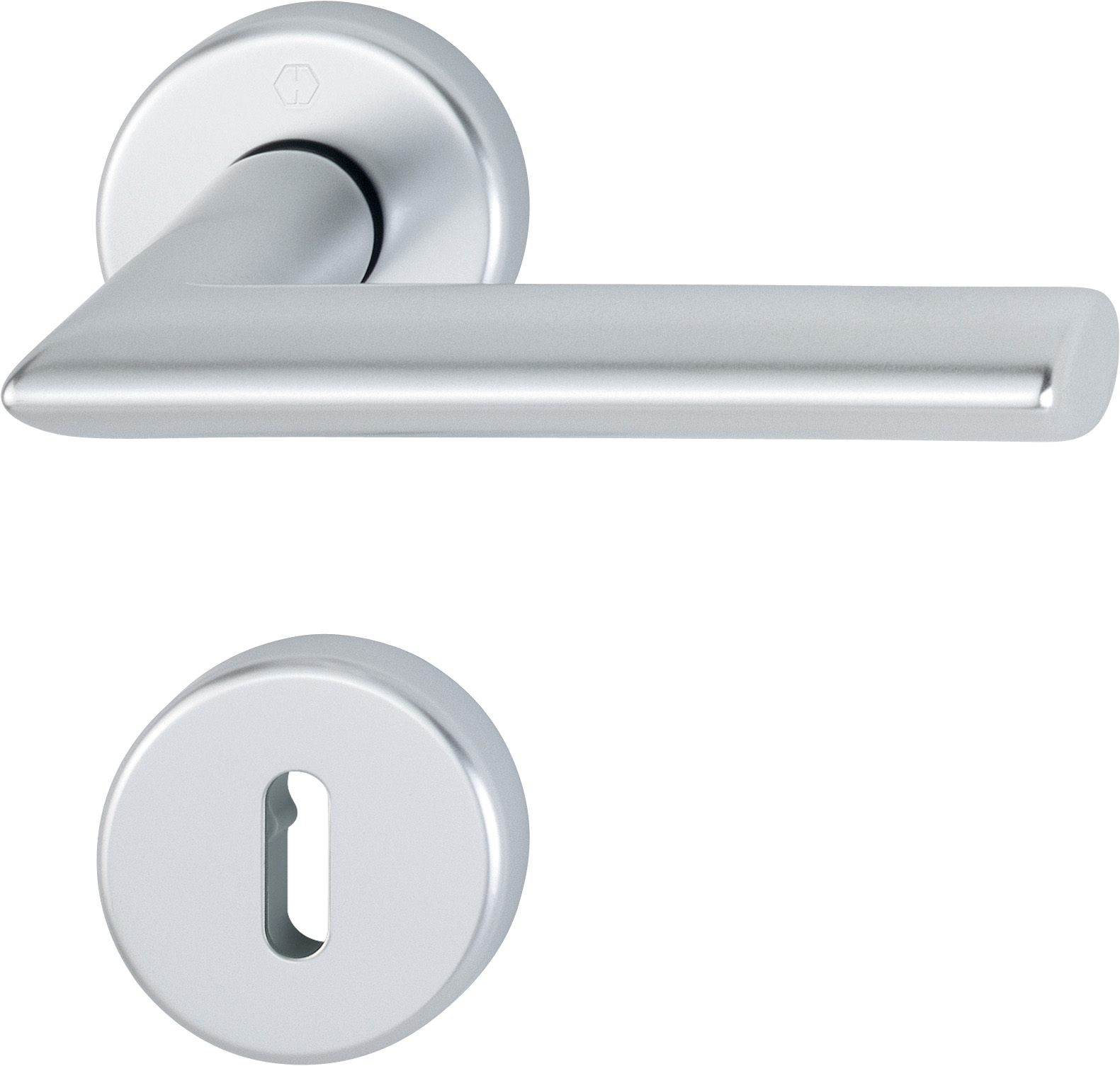 Zestaw klamek drzwiowych z rozetami wykonany z aluminium jest szczególnie lekki. Klamka jest luźno osadzona, dzięki czemu zestaw nadaje się doskonale do intensywnie użytkowanych drzwi:
