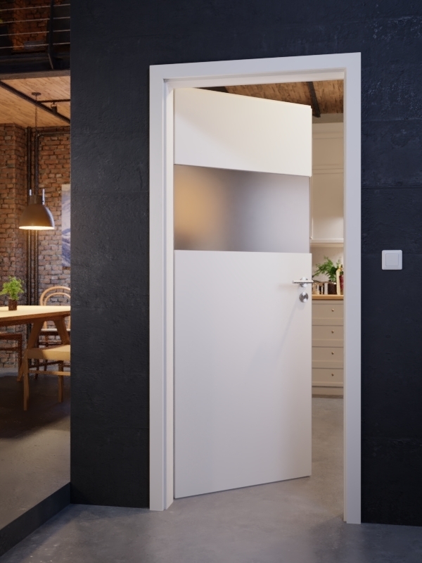 W górnej części drzwi znajduje się szeroki, poziomy pas świetlny. Dzięki temu do Twojego pomieszczenia wpada światło, a stojąc bezpośrednio przed drzwiami, masz subtelny wgląd do wnętrza.