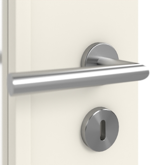 Kanciasta przeszklenie z listwami dodaje nowoczesnej atmosfery. Jest wąska i znajduje się po stronie zamka drzwi. Dzięki wysokości umożliwia widok na drugą stronę drzwi i nadchodzące osoby. To przydatna funkcja w bardzo ruchliwych miejscach, takich jak biura czy kuchnie. Klamka i zamek zyskują również więcej światła.