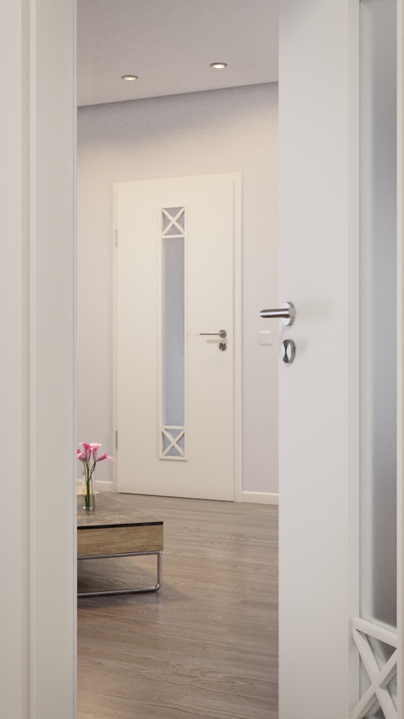 Drzwi w klasycznej bieli ujawniają swoją matową, miękką powłokę, ukazując prostotę drzwi wewnętrznych. Dzięki temu subtelnie zdobią każde wnętrze i są odporne na uszkodzenia.