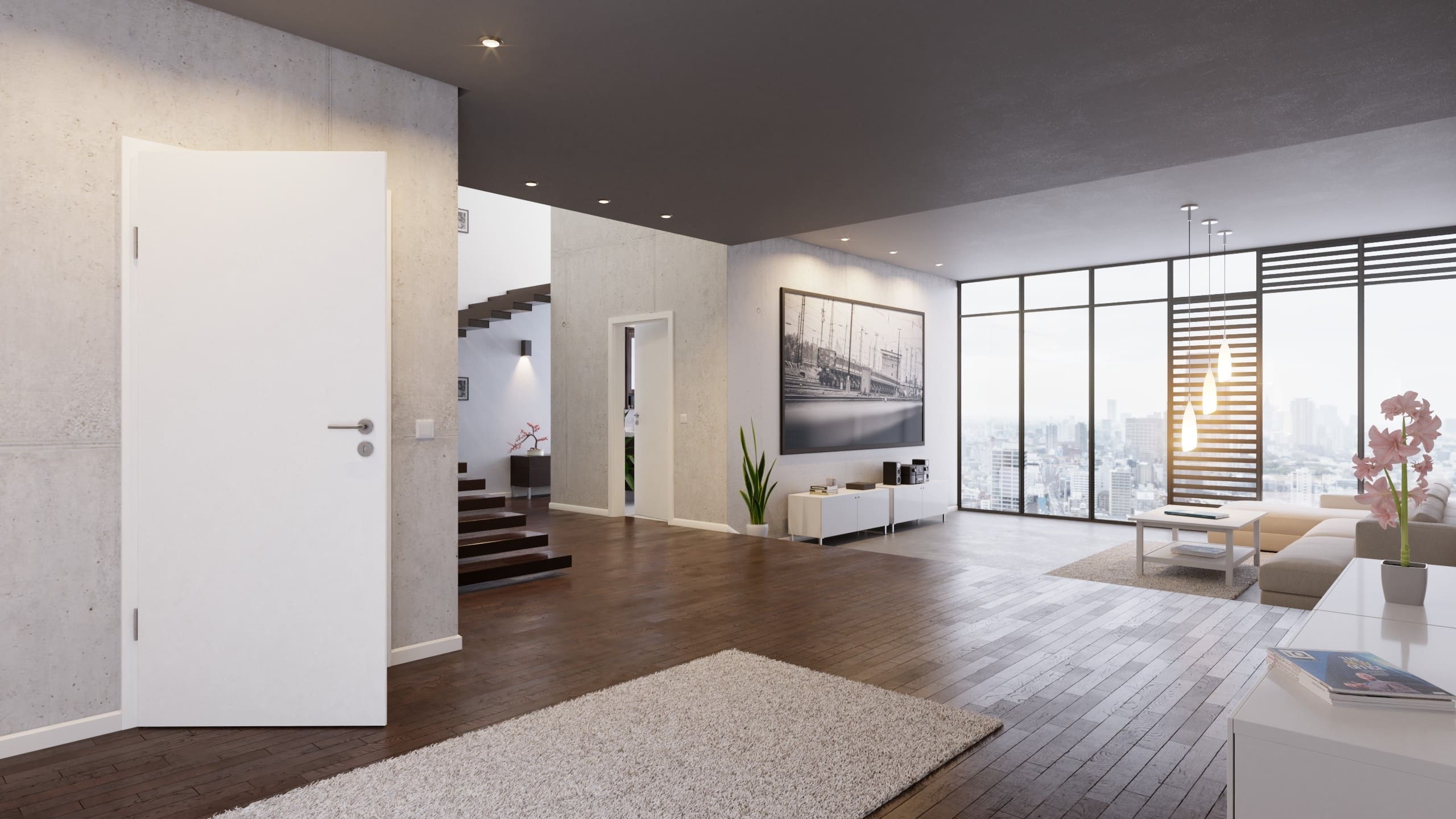 Drzwi wewnętrzne w kolorze klasycznej bieli (RAL9010) dzięki swojej prostocie i matowo połyskującej powłoce soft-touch stanowią subtelną ozdobę każdego wnętrza i są bardzo odporne.