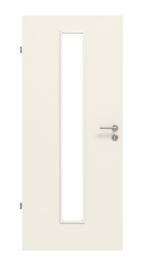 Nieograniczony widok na przeciwną stronę zapewnia centralnie umieszczony, wąski przeszklenie. Sięga ono prawie całej wysokości drzwi. Od przezroczystego szkła po matowe dostępne jest odpowiednie szkło dla (prawie) każdej wizji. Ten model drzwi dostarczany jest bez szklenia. Pożądany wkład szklany jest dostępny za dodatkową opłatą.
