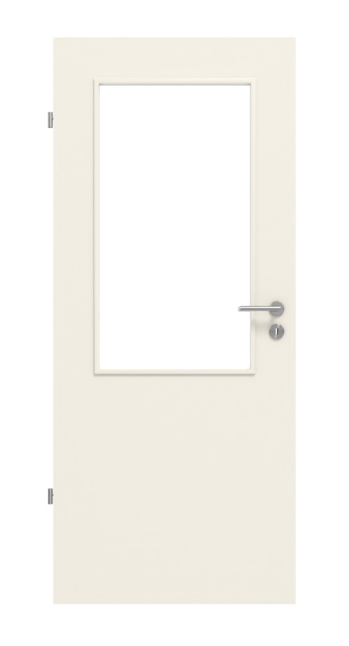 W tym szkle w górnej części drzwi można zajrzeć do pomieszczenia. Dolna część jest chroniona przed stłuczeniem. Ten model drzwi dostarczany jest bez szklenia. Pożądany wkład szklany jest dostępny za dodatkową opłatą.