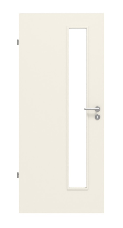 Otwór szklany znajduje się po stronie zamka, co zapewnia więcej światła przy klamce i zamku. Jest wydłużony i sięga niemal całej wysokości drzwi. Dzięki temu osoby po drugiej stronie mogą być natychmiast zauważone. W przypadku wyboru szkła masz niemal wszystkie możliwości aranżacji, od matowego do przezroczystego. Wkład szklany jest dostępny za dodatkową opłatą. Standardowo skrzydło drzwiowe jest bez wypełnienia szklanego.