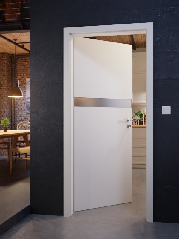 Wąski, poprzeczny pas świetlny nad klamką drzwiową nadaje drzwiom wyjątkowy charakter i wzbogaca pomieszczenie subtelnym światłem.