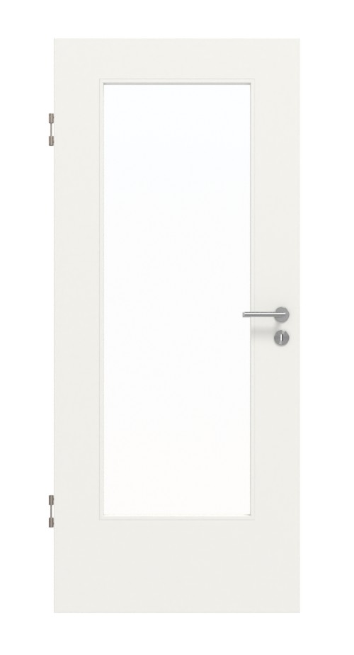 Na skrzydle drzwi znajduje się biała powłoka lakiernicza, nałożona w technologii wielowarstwowej. Dzięki świeżemu, jasnemu odcieniowi nowoczesna jasność manifestuje się w Twoich pomieszczeniach. Duże przeszklenie podkreśla jasny i nowoczesny wygląd powłoki.