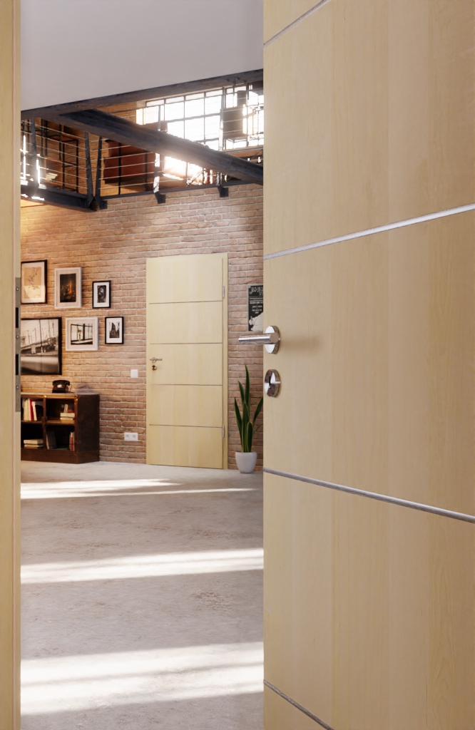 Naturalny design drzwi: Drzwi wewnętrzne Optima, fornirowane drewnem naturalnym w kolorze klonu kanadyjskiego Classic firmy Jeld-Wen przekonują naturalną powierzchnią z forniru drewnianego i solidnym wykonaniem.