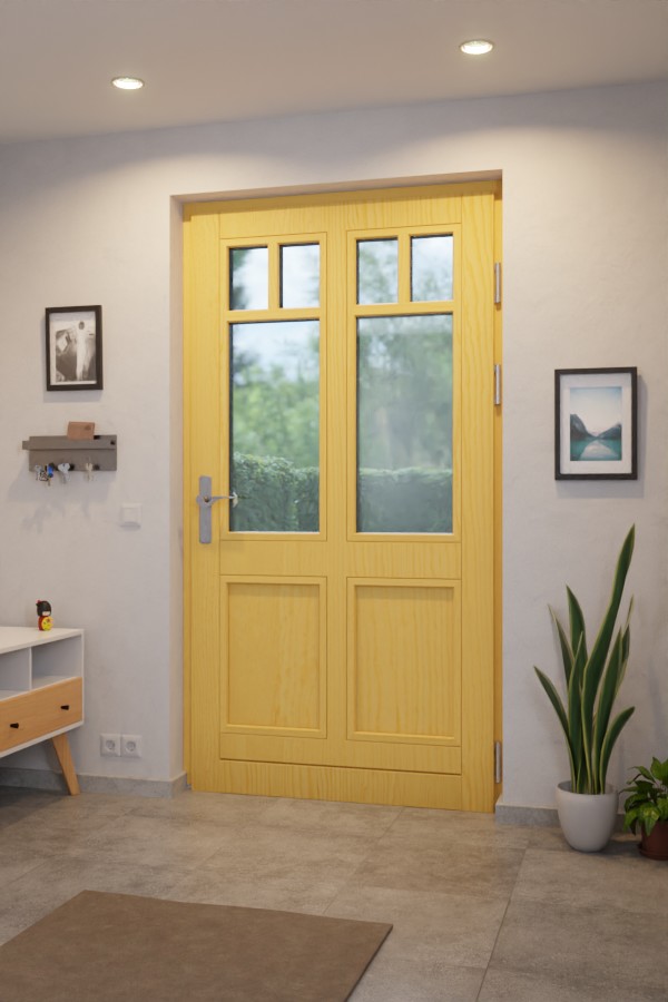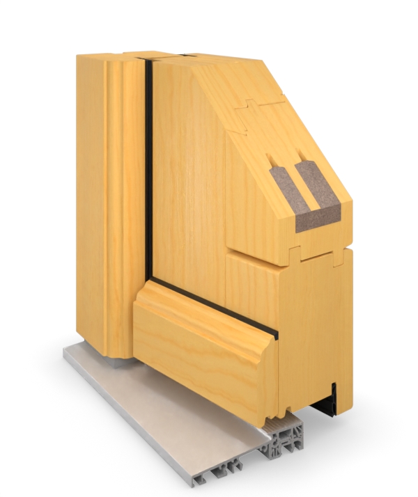 Drzwi konstrukcyjne, laminowane w systemie 3-warstwowym, składają się z ościeżnicy skrzydłowej i wypełnienia z drewna. Konstrukcja zapewnia szczególnie skuteczną izolację cieplnądzięki naturalnym właściwościom drewna.