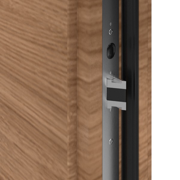 • Wersja standardowa zamka: Zamek automatyczny jako wielopunktowe zamknięcie z zapadką dzienną, stabilne rygle zapadki, 20 mm domknięcia i zabezpieczenie przed przeciwciśnieniem w skrzydle drzwiowym, ukryte i ciągłe płytki zaczepowe w estetyce srebra w ramie