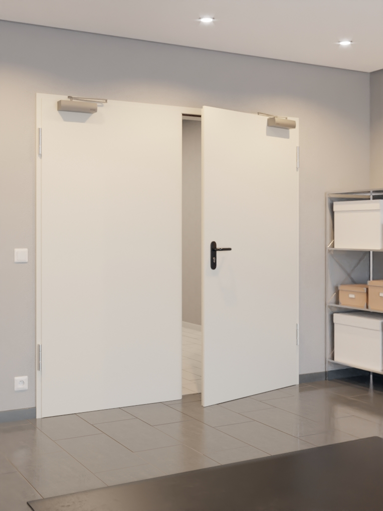 Drzwi są odporne na działanie ognia przez co najmniej 30 minut, ponieważ spełniają wymagania klasy odporności ogniowej określonej w normie DIN EN 13501. W standardzie jest wyposażona w ramę, zamknięciami górnymi, zamkiem PZ klasy 3 oraz zawiasami .