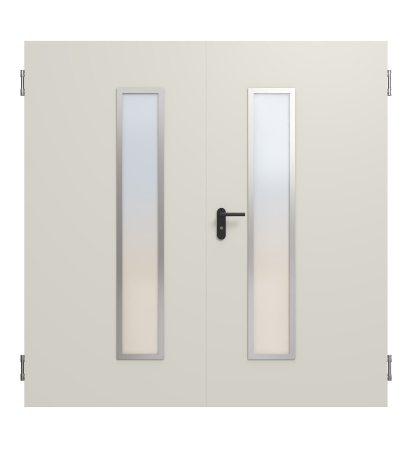 Szklenie drzwi wielofunkcyjnych pozwala na wykorzystanie światła dziennego we wnętrzu. W standardzie montowana jest rama szklana w kolorze naturalnego aluminium z listwami mocującymi szkło, umieszczona po stronie przeciwnej do zawiasów.