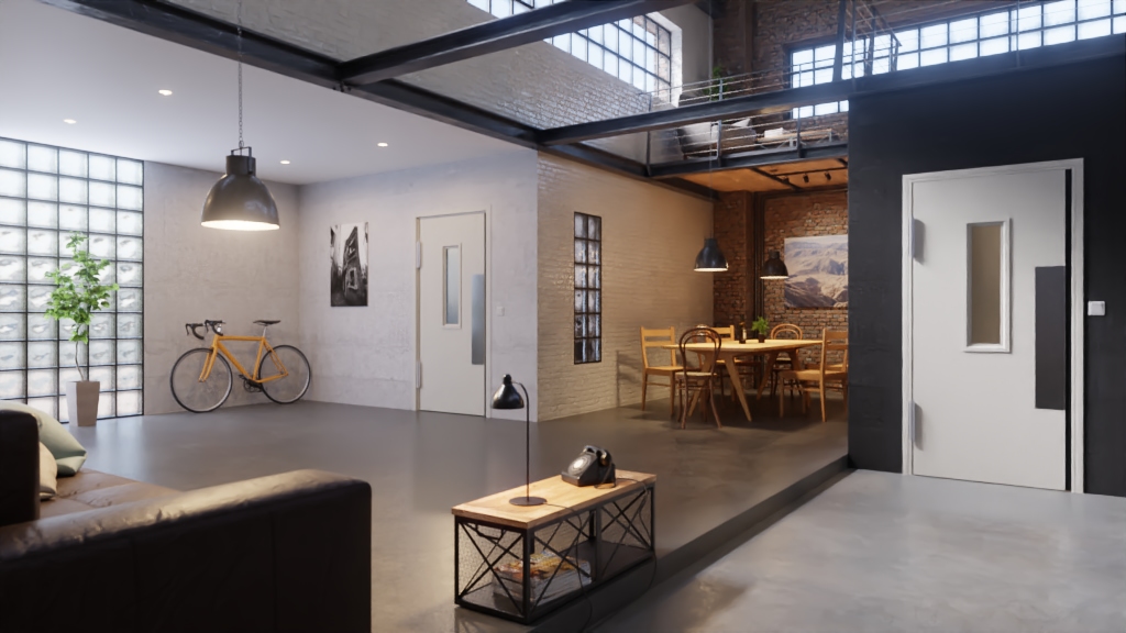 Idealnie oddziela poszczególne pomieszczenia: Dzięki drzwiom wahadłowym stalowym MZ-1 z przeszkleniem 2 i ościeżnicą narożną firmy Hörmann łatwo przejdziesz z jednego pomieszczenia do drugiego.