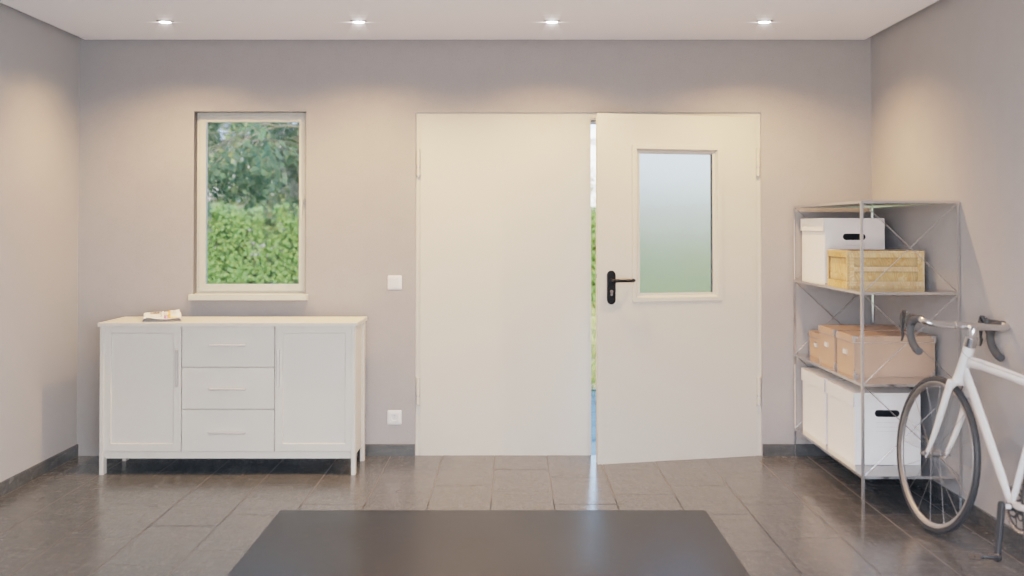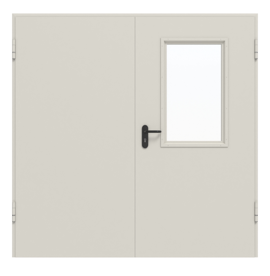 Kompletny zestaw drzwi wewnętrznych od Hörmann składający się z drzwi stalowych wielofunkcyjnych, ościeżnicy i klamki: