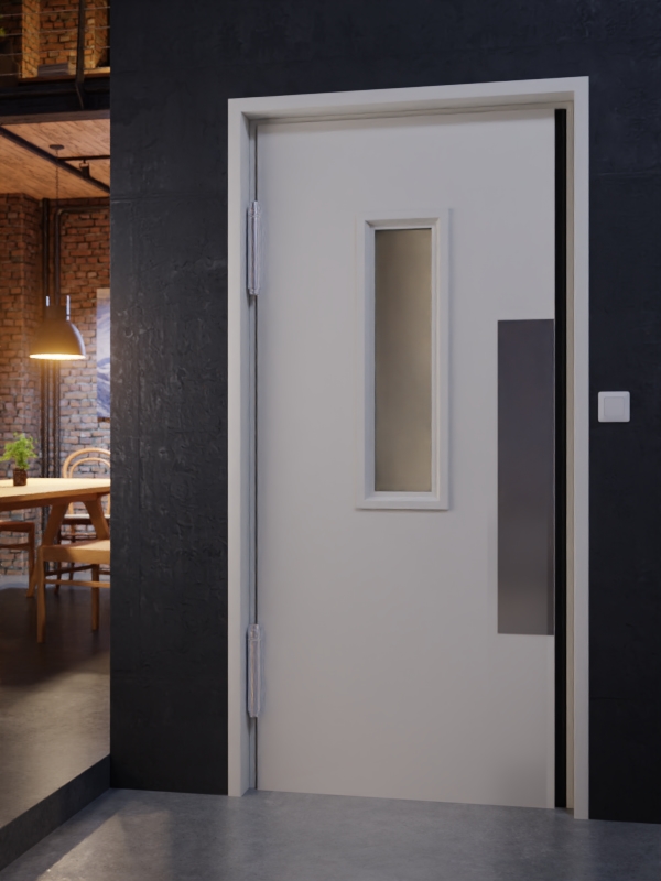 • Drzwi wahadłowe stalowe MZ-1 z przeszkleniem 2 i ościeżnicą opaskową