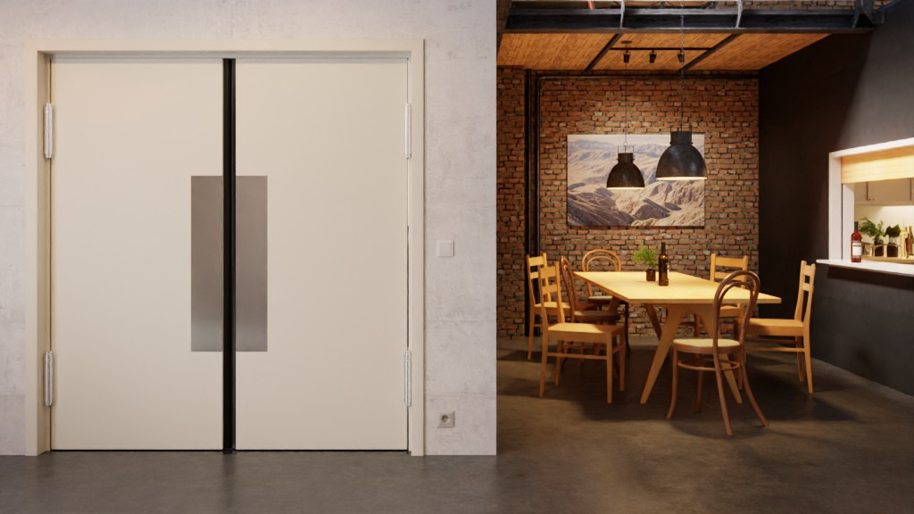 Te dwuskrzydłowe drzwi wahadłowe ze stali od Hörmann można otwierać w obu kierunkach: