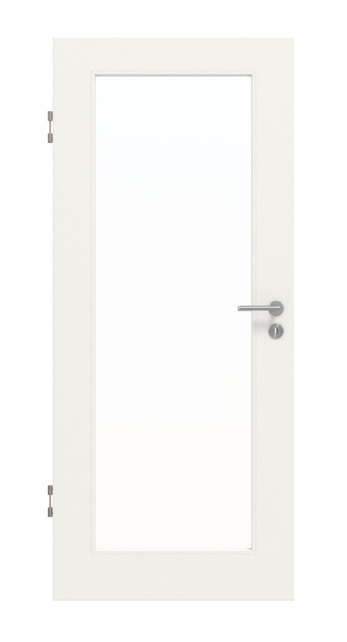 Trwała wielowarstwowa powłoka lakiernicza jest utrzymywana w kolorze świeżej bieli. Jeszcze więcej jasności zapewnia duże przeszklenie, które jest zamontowane w skrzydle drzwiowym za pomocą listew przytrzymujących szkło, dopasowanych do powierzchni.