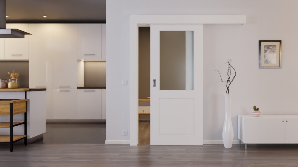 Estetyczne drzwi przesuwne z wbudowaną muszlą uchwytową: