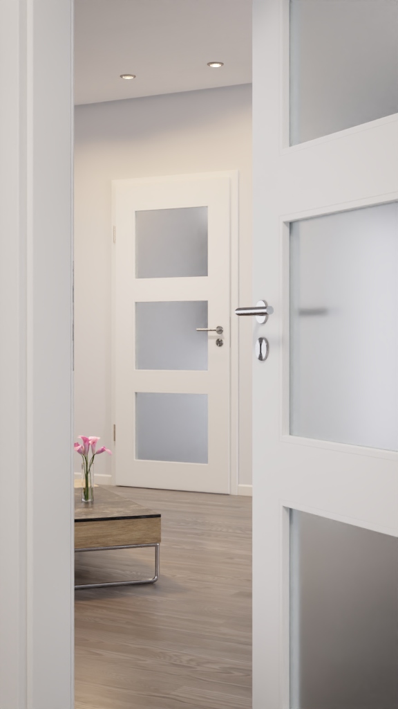 Pomalowane drzwi wewnętrzne z zamkiem Flüstercomfort: