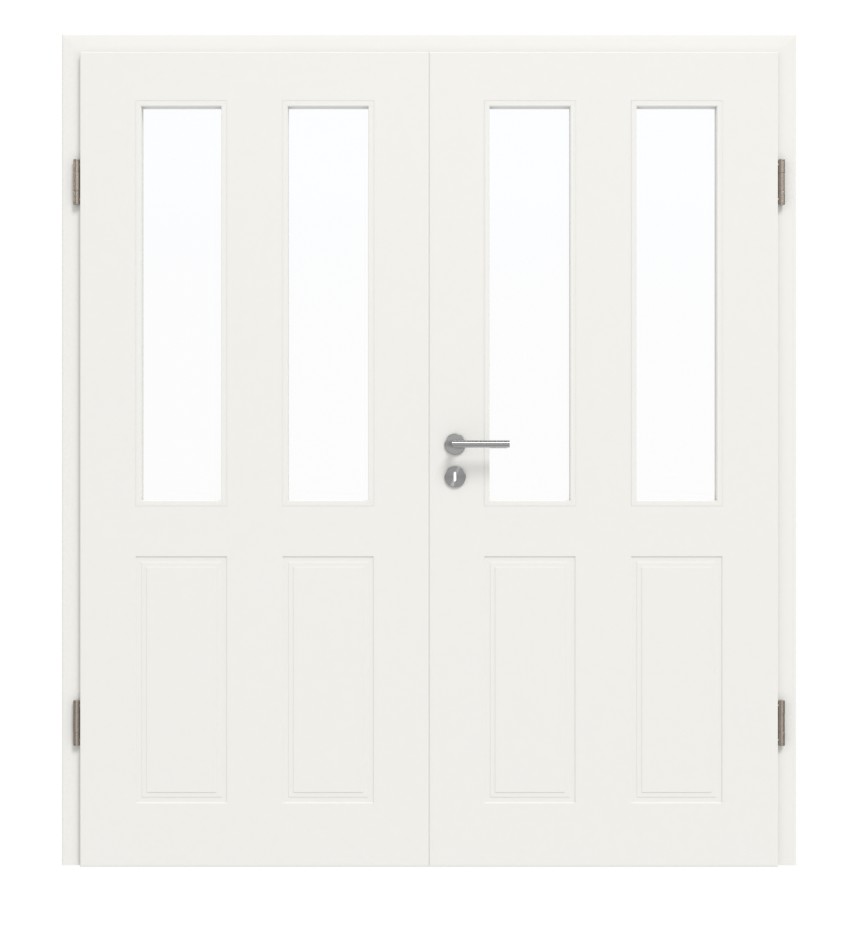 Dla otwartego domu: Drzwi dwuskrzydłowe 4F LA-2G z powierzchnią ExpertLack w kolorze białym błyszczącym (podobnym do RAL 9016) od Jeld-Wen zwiększa komfort w Twoim domu.