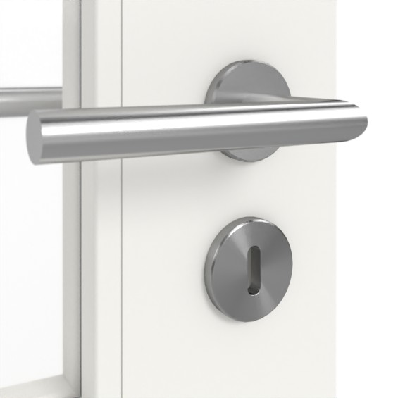 Wnętrze skrzydeł drzwiowych wykonane jest z płyty wiórowej pełnej. Oba skrzydła drzwi mają sfazowane krawędzie i są stabilnie osadzone w ościeżnicy dzięki dołączonym 3-częściowym zawiasom. Zamek Flüsterkomfort-Buntbartschloss zmniejsza poziom hałasu podczas zamykania drzwi.
