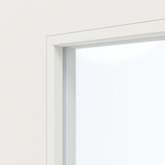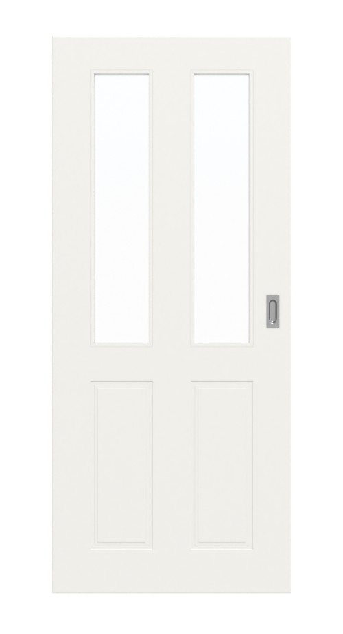 Cztery prostokąty wyróżniają się dzięki wyfrezowanym otworom na skrzydle drzwiowym. W dwóch górnych znajdują się dwa wycięcia na oświetlenie, które są umieszczone w płaskich listwach mocujących szkło.