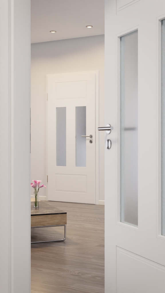 Drzwi lakierowane w technologii wielowarstwowej z zamkiem Flüstercomfort: