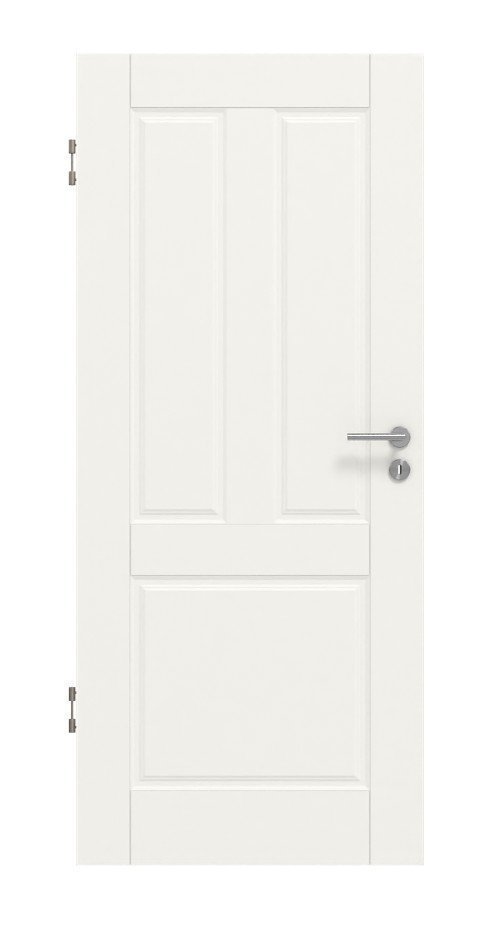 Dzięki profilowaniu frezowanemu w konturze powstaje klasyczny wzór z trzema prostokątami. Szlachetne lakierowanie na biało w opcjonalnych kolorach RAL 9010 lub RAL 9016 nadaje skrzydłu drzwi nowoczesny i przyjazny wygląd.