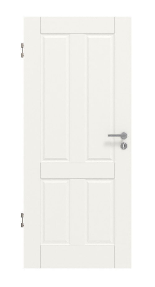 Profilowanie frezowane w konturze oraz zarysowane V-fugi nadają drzwiom klasyczny wygląd. Dzięki wysokiej jakości białemu lakierowi w opcjonalnych kolorach RAL 9010 lub RAL 9016 uzyskuje się olśniewający i szlachetny blask.