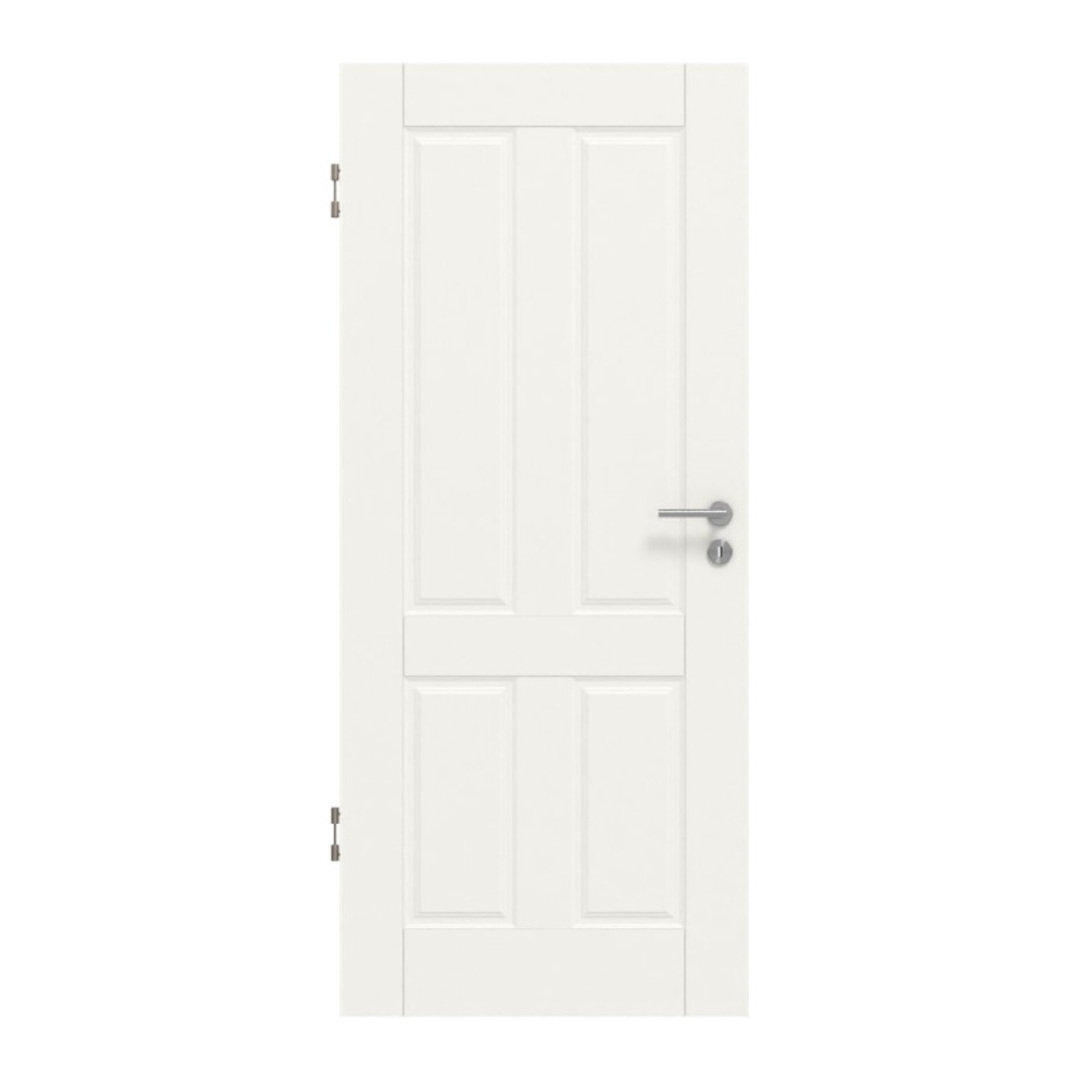 Trwałe drzwi wewnętrzne Kontura 4 w białym lakierze z solidnym zawieszeniem: