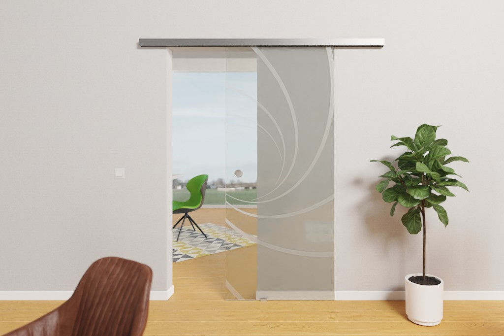 Delikatny, półokrągły motyw spirali zdobi przezroczyste skrzydło drzwi przesuwnych i stanowi nowoczesny element przyciągający wzrok. Matowy motyw tworzy dyskretne, nieprzezroczyste fragmenty o wysokim stopniu nieprzejrzystości. Dzięki drzwiom przesuwnym Cristall masz pewność, że Twoje pomieszczenia będą pełne światła. Ciesz się odświeżającym, lekkim wystrojem wnętrz.