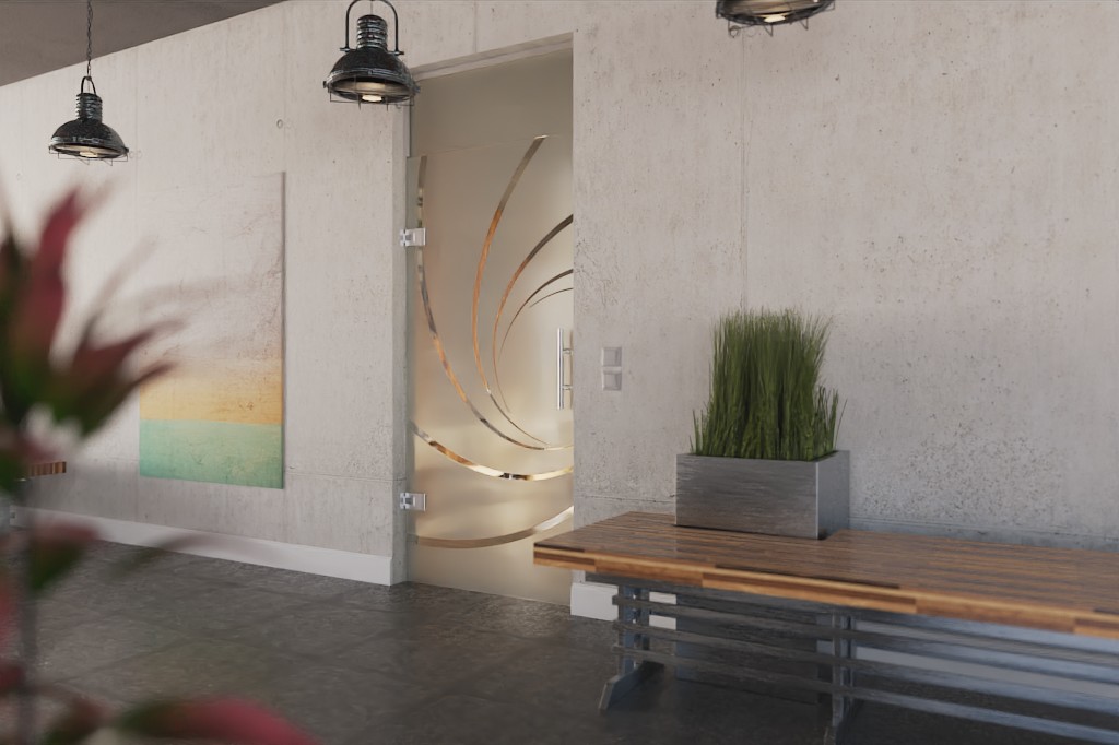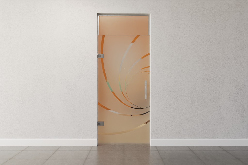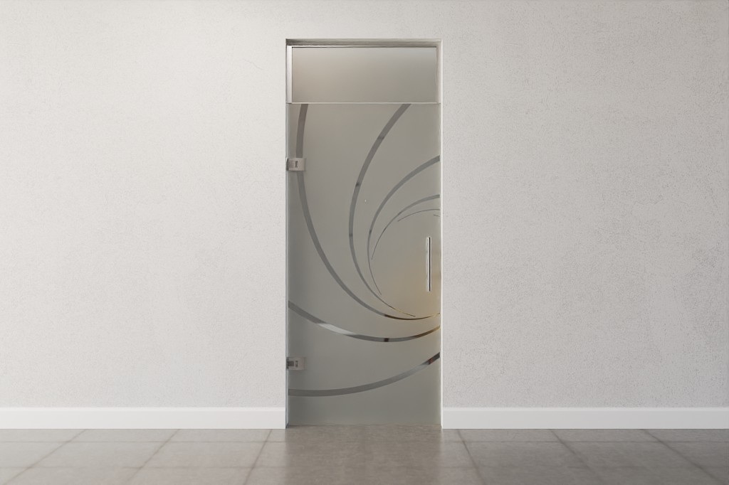 Ponadczasowe drzwi przeszklone z górnym oświetleniem z specjalnie pokrytego szkła hartowanego: