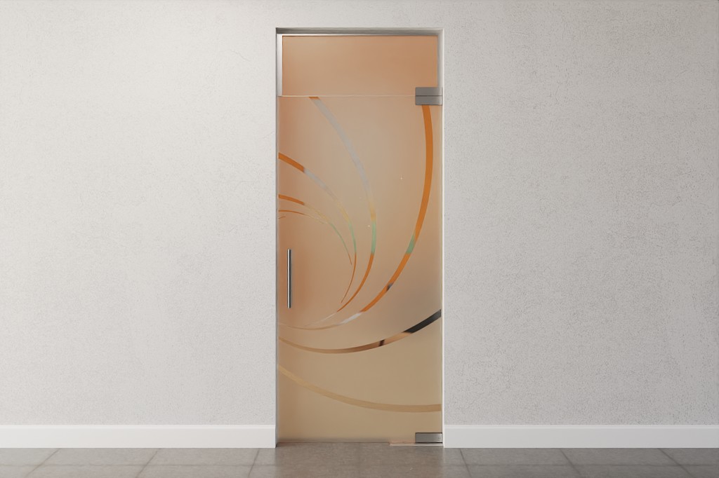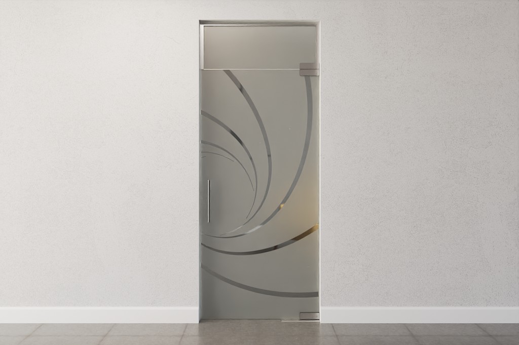 Modna całoszklana konstrukcja z drzwiami wahadłowymi i świetlikiem z trwałego i specjalnie pokrytego szkła bezpieczeństwa: