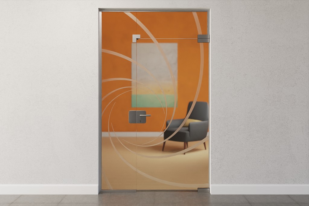 Atrakcyjne drzwi szklane z bocznym panelem i górnym oświetleniem, w tym najlepsze zawiasy DORMA Mundus: