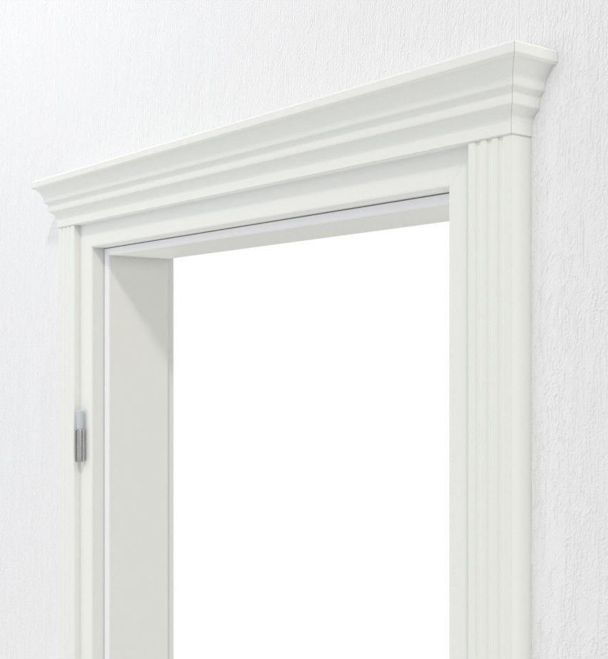 Niezwykłe i stylowe rozwiązanie ościeżnicy: Ten zestaw zawierający ościeżnicę drzwi wewnętrznych i koronę w kolorze białym lakierowanym RAL 9003 firmy Classen w ekstrawagancki sposób upiększy twoje pomieszczenia mieszkalne.