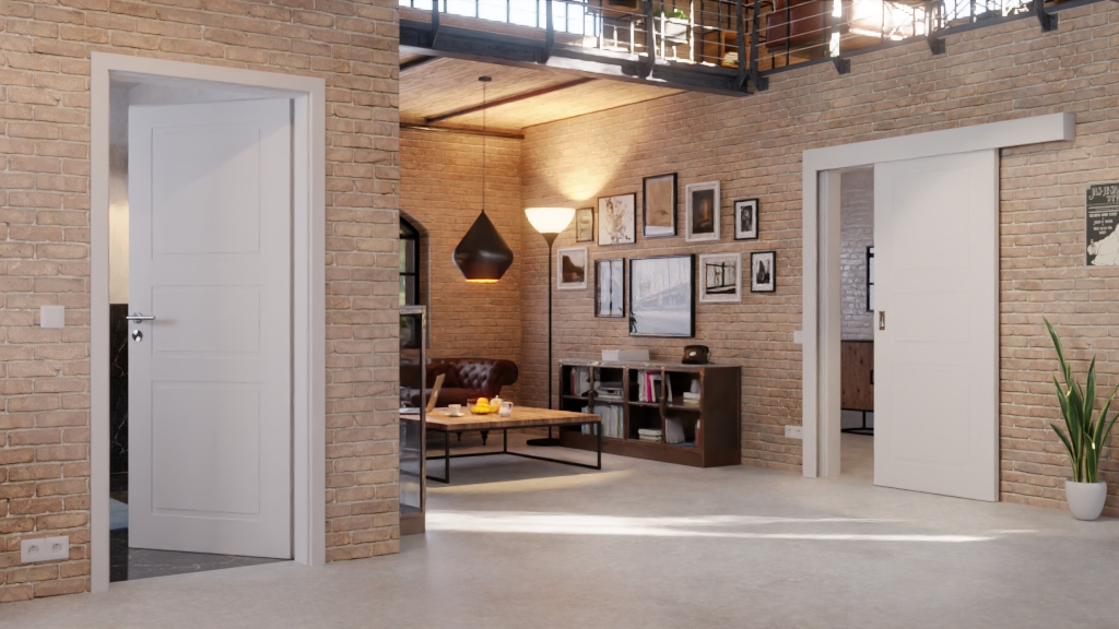 Malowana drzwi przesuwne z wbudowaną muszlą uchwytową: