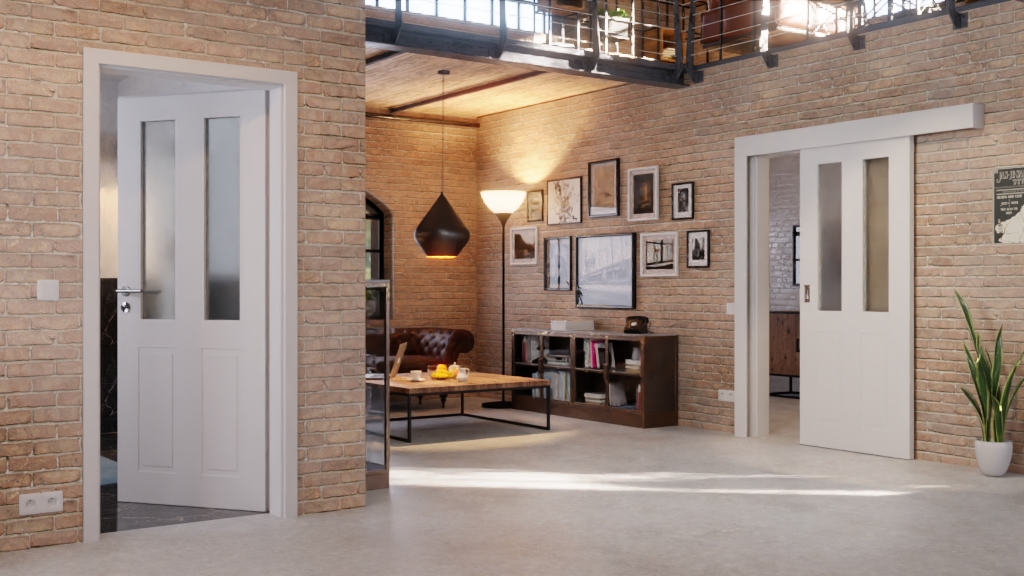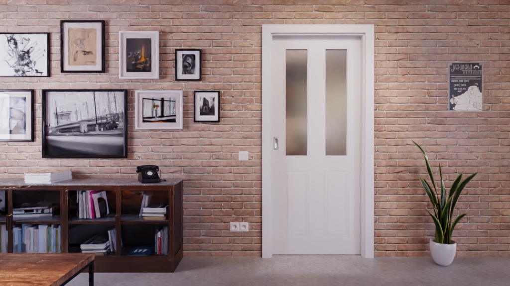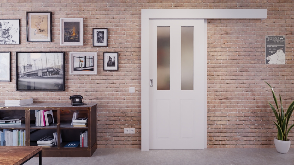 Ponadczasowe drzwi przesuwne z prowadnicą dolną i uchwytem: