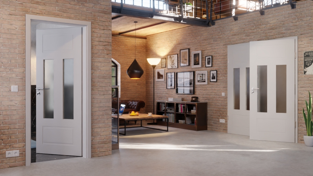 Drzwi wewnętrzne podwójne z odporną powłoką lakierniczą: