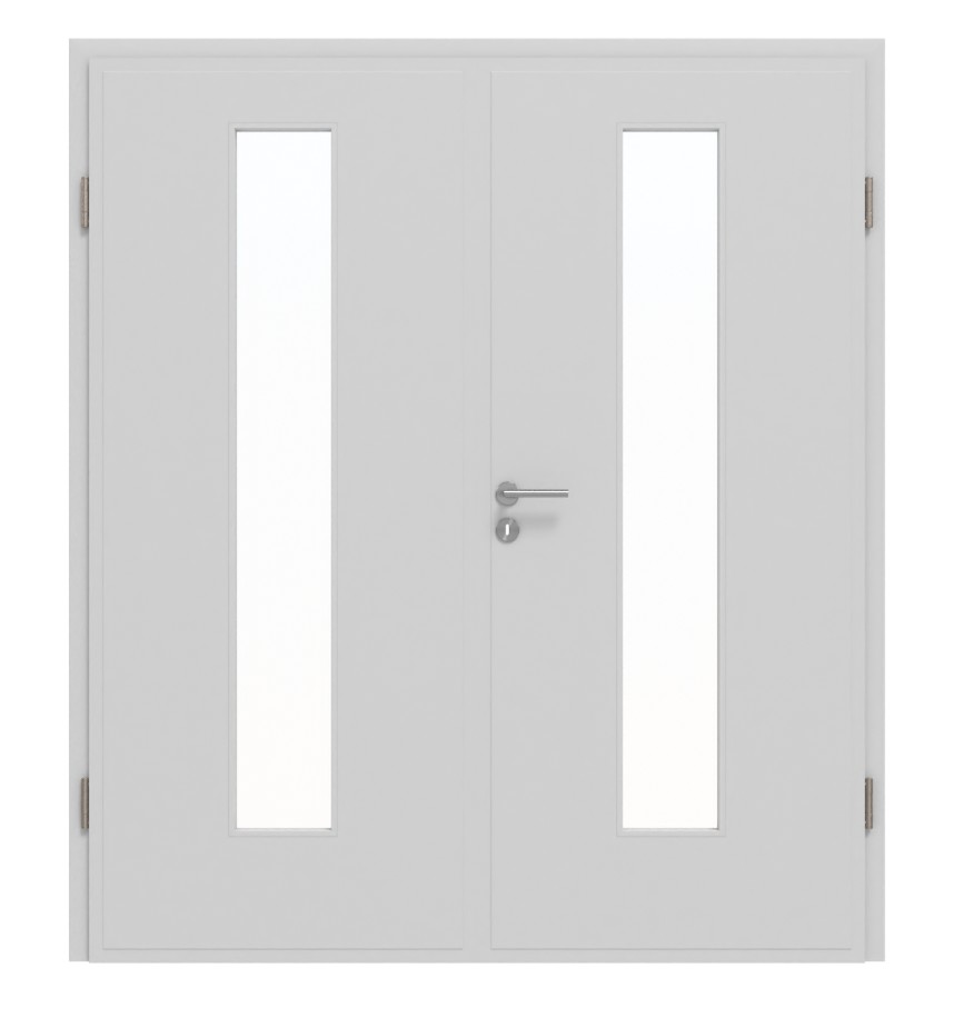 Jako materiał na rdzeń skrzydła drzwiowego producent stosuje płytę wiórowąpełną. Oba skrzydła drzwi mają sfazowane krawędzie i są stabilnie osadzone w ościeżnicy dzięki dołączonym 3-częściowym zawiasom. Zamek Flüsterkomfort-Buntbartschloss zmniejsza poziom hałasu podczas zamykania drzwi.