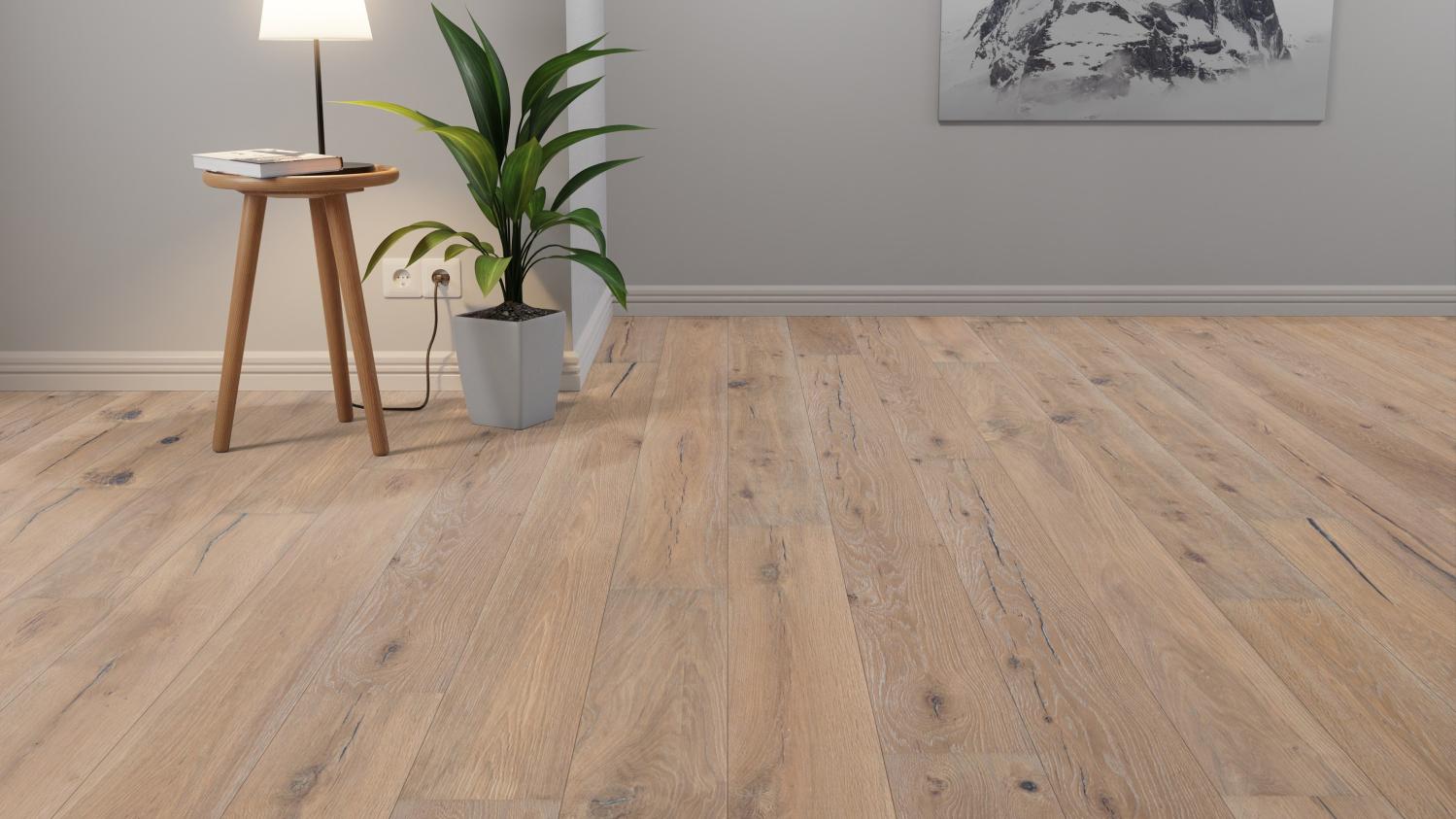 Deski w stylu wiejskim są wykonane z wysokiej jakości drewna dębowego i wyróżniają się wyjątkowym designem. Ponadto dzięki struganej powierzchni uzyskuje się jedwabisty połysk. Dzięki ochronnej obróbce naturalnym olejem podłoga jest bardziej odporna na wilgoć i zabrudzenia, a ponadto zapewnia lepszy klimat w pomieszczeniu.