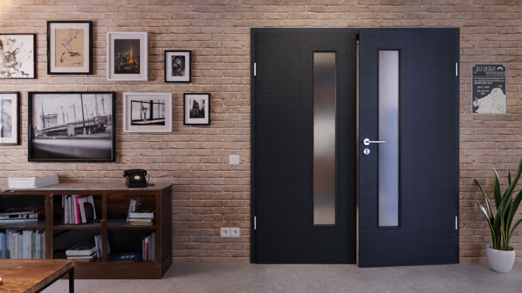 Drzwi podwójne z przeszkleniem i odporną na ścieranie powłoką: