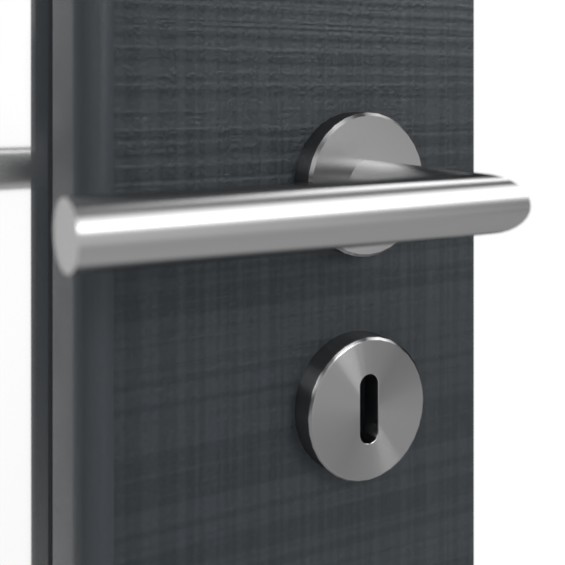 Na skrzydle drzwi widoczne są delikatne linie, które przypominają tekstylia. To wzór jest również wyczuwalny dzięki wytłoczonej strukturze. Światło UV, zarysowania i ścieranie nie mają wpływu na wytrzymałą powłokę. Dzięki wąskiemu przeszkleniu po stronie zamka, światło dostaje się do Twojego domu.