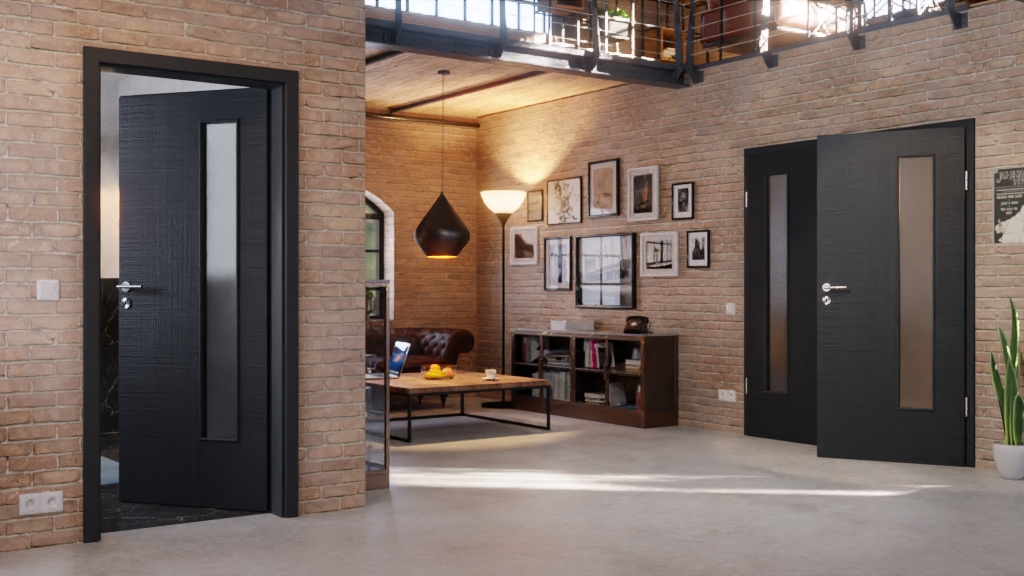 Rdzeń skrzydła drzwi o grubości 40 mm składa się z płyty wiórowej pełnej. Ościeżnica, listwy szklane, zamek wielozadaniowy oraz cztery dwuczęściowe zawiasy są już standardowo dołączone.