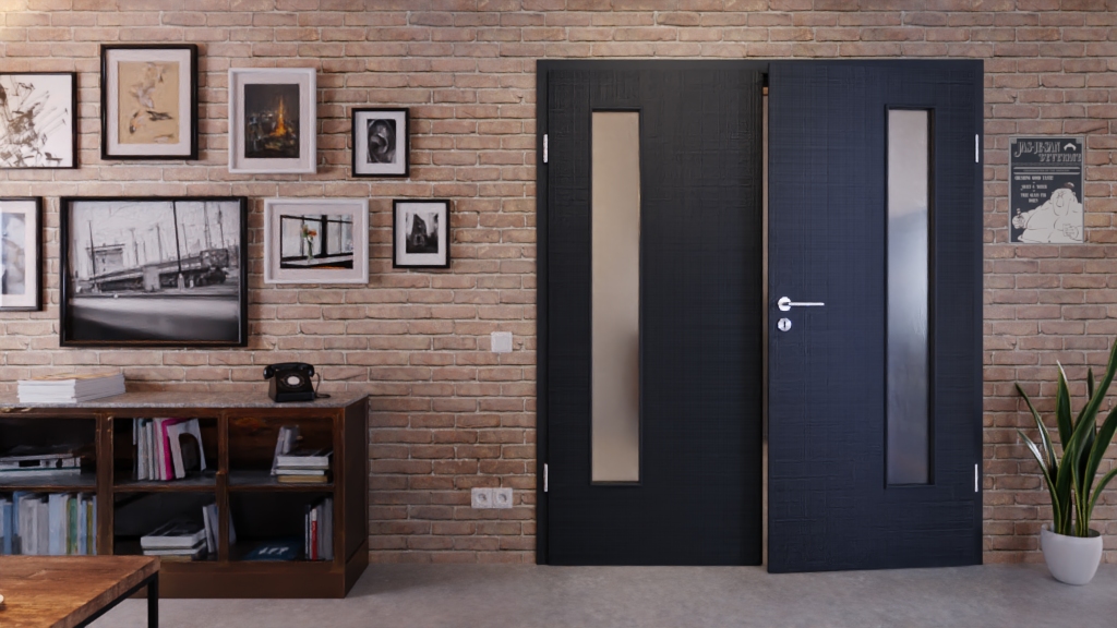 Dwuskrzydłowy model drzwi z przeszkleniem i odporną na ścieranie powłoką: