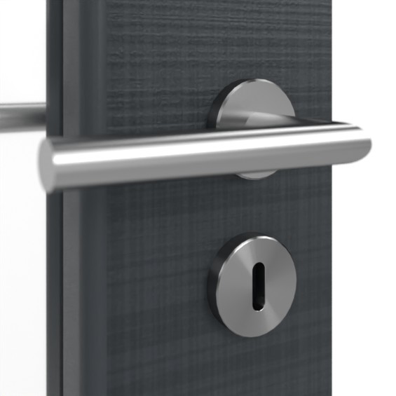 Oba skrzydła drzwi o grubości 40 mm są odporne na codzienne uderzenia dzięki płycie wiórowej w środku. Ościeżnica, listwy szklane, zamek wielozadaniowy oraz cztery dwuczęściowe zawiasy są już standardowo dołączone.