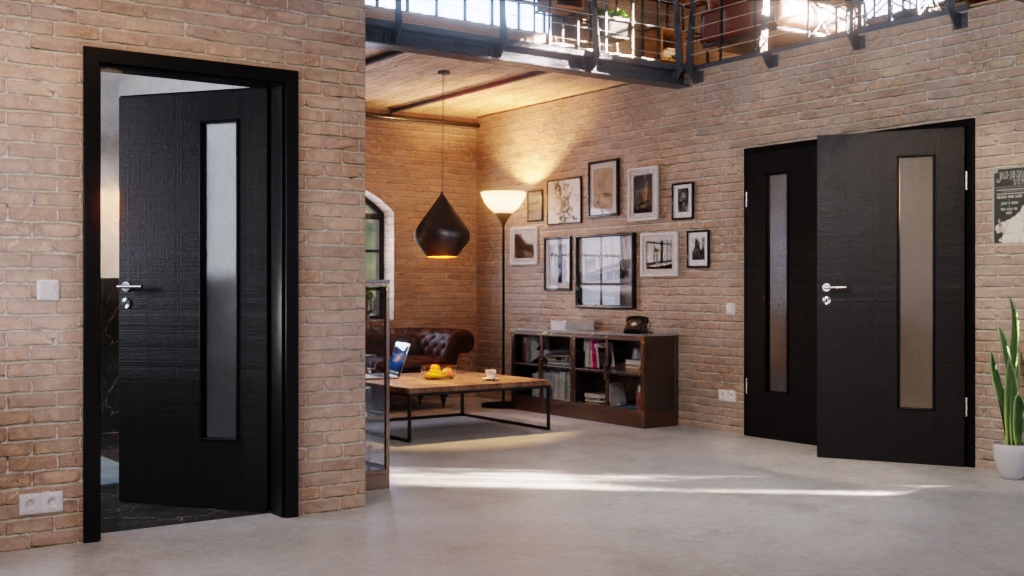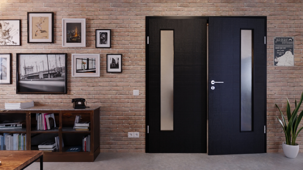 Drzwi wewnętrzne podwójne z przeszkleniem i odporną na ścieranie powierzchnią: