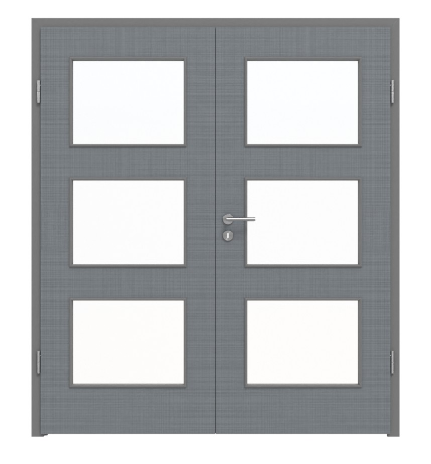 Uderzenia nie robią modelowi większej krzywdy, ponieważ wewnątrz 40 mm grubości skrzydła drzwi znajdują się płyty wiórowe. Standardowo dostarczane są ościeżnica, listwy szklane, zamek wielozadaniowy oraz 2-częściowe zawiasy.