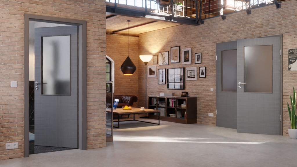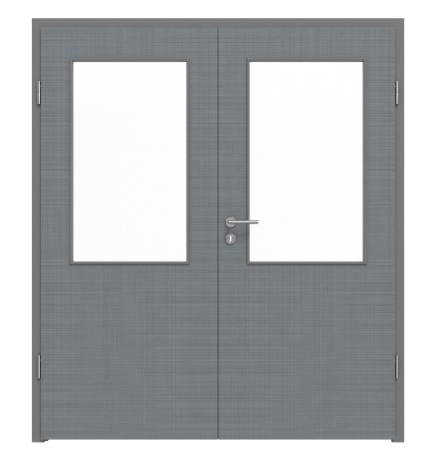 Drzwi wewnętrzne podwójne z wlotem szklanym i odporną na ścieranie powłoką: