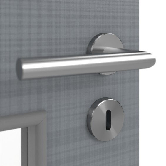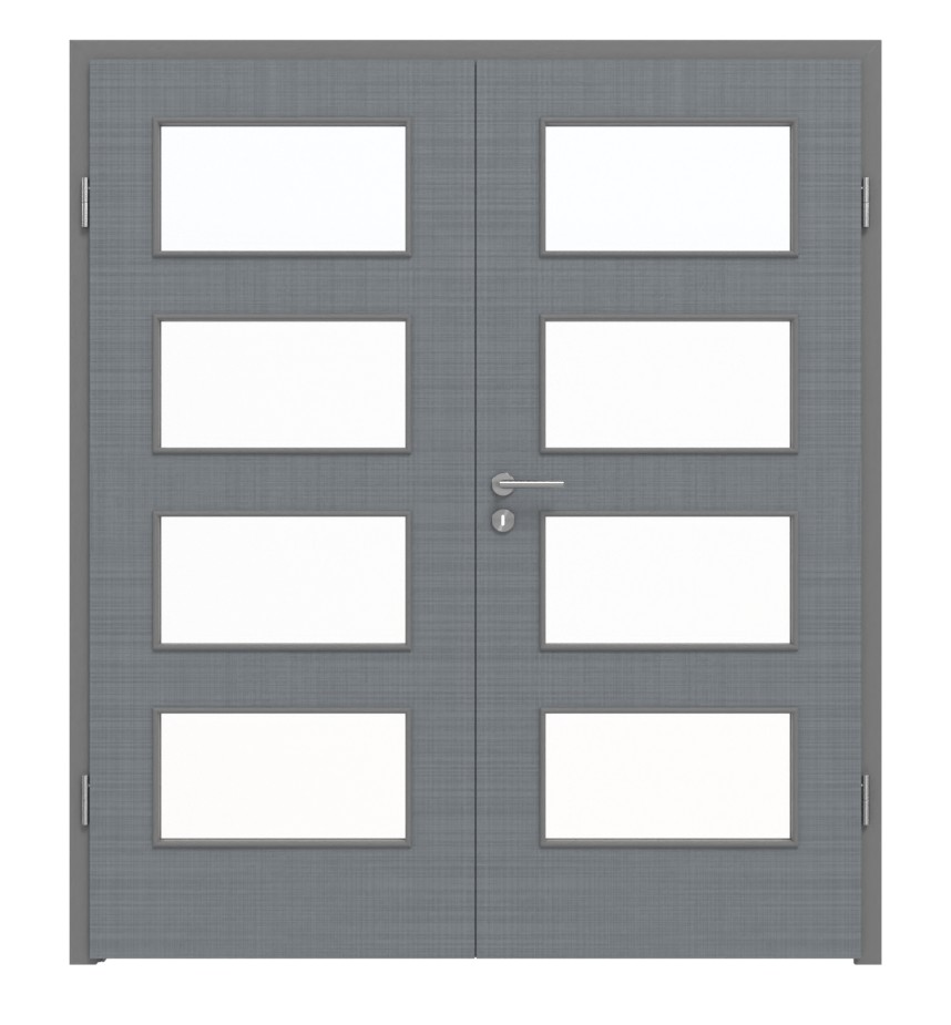 Delikatne linie są widoczne na szarym dekorze tekstylnym. Można je również doświadczyć dotykowo dzięki wytłoczonej strukturze na powierzchni odpornej na ścieranie i zarysowania. W skrzydle drzwiowym znajdują się cztery otwory na światło.